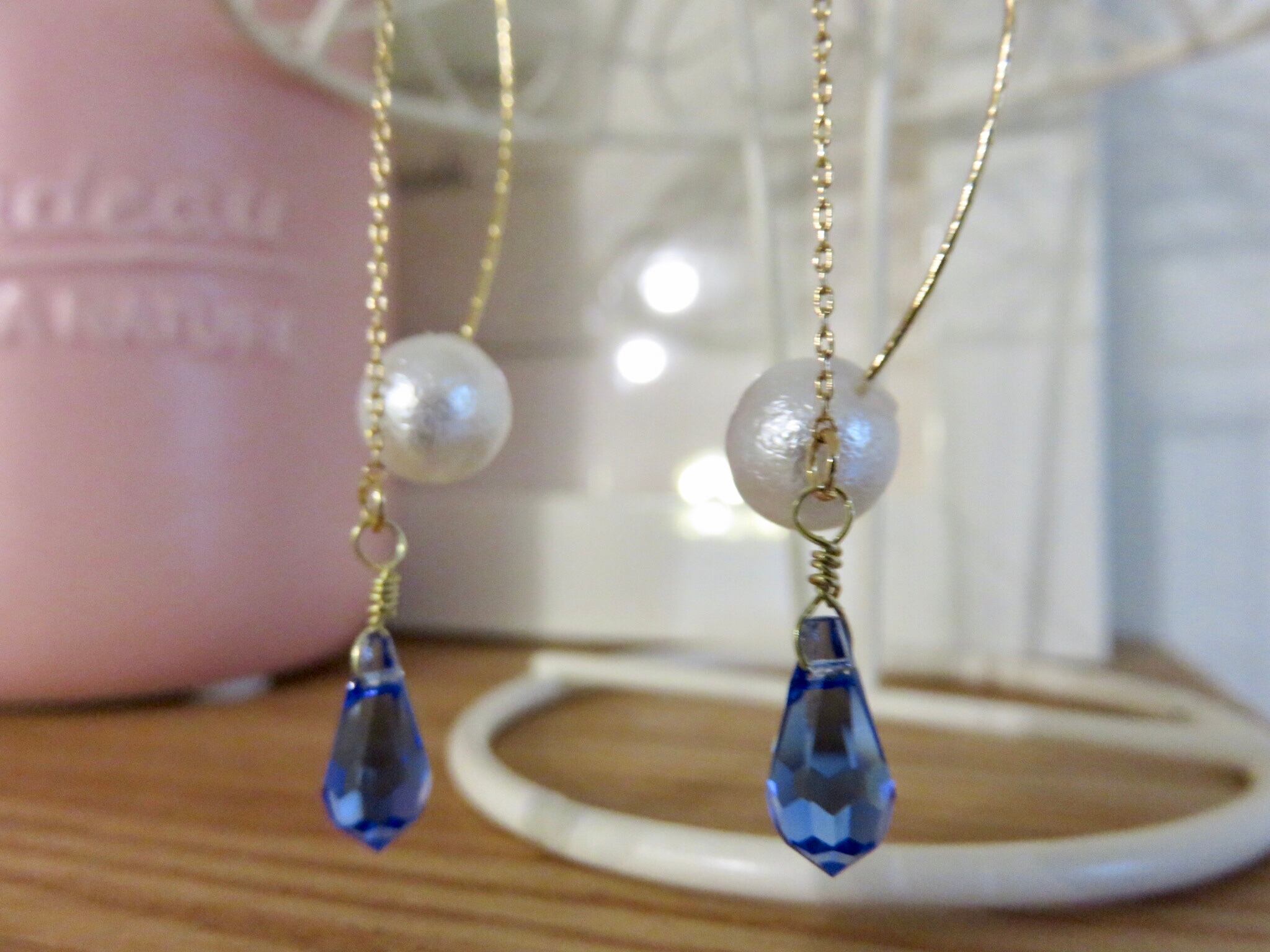 ピアスキャッチに光沢を抑えたコットンパール調のキャッチを合わせました。