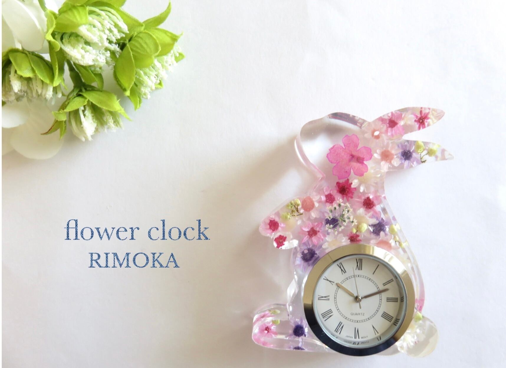 ギフトに!【フラワークロック】置き時計 ギフト お祝い 送別 うさぎ